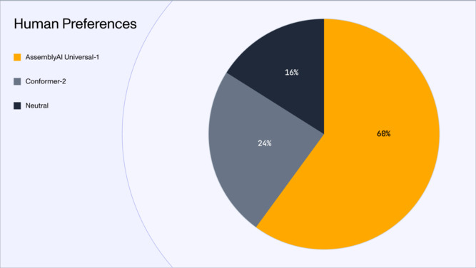 - People prefer the outputs from Universal-1 over Conformer-2, our previous Automatic Speech Recognition (ASR) model, 71% of the time when they have a preference. [Link]